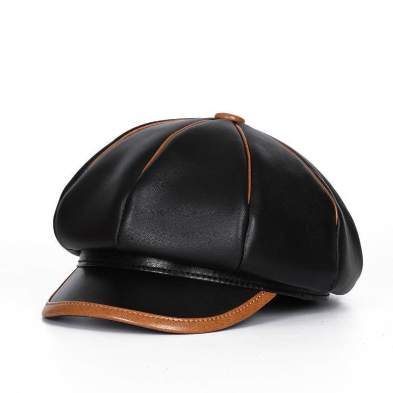 La Spezia Black Genuine Leather Newsboy Cap