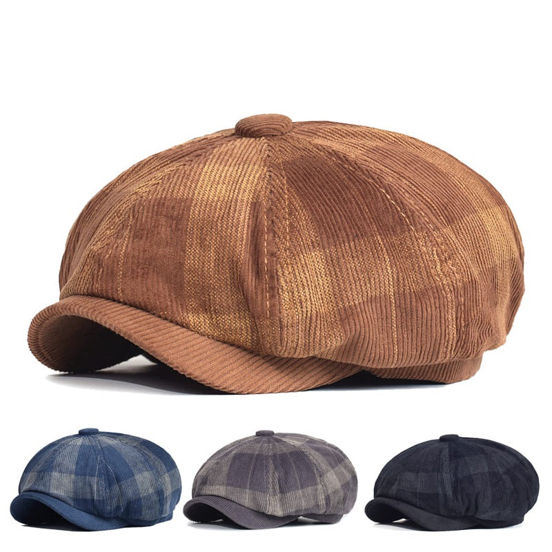 Beynac Plaid Corduroy Newsboy Cap